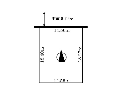- 北側9.09m公道に間口14.56m接道